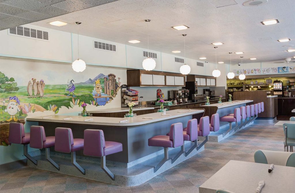 Delightful murals stir the imagination. Decorative borders on top of the booths keep an open-air feeling yet provide an intimate space you and your family will enjoy.